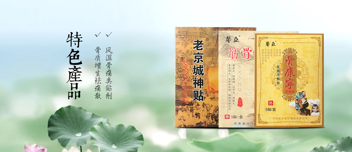 公司主要從事貼劑、膏藥、粉劑及醫(yī)療衛(wèi)生材料等多種劑型生產(chǎn)銷售。主導(dǎo)產(chǎn)品有:骨質(zhì)增生袪痛貼、肩周炎一貼靈、安痛貼[系列]、偏癱威靈貼、腳氣百分百、兩面針抗菌液、痛經(jīng)百消貼、乳腺增生百消貼、無痕燒傷膏、等二十多個(gè)產(chǎn)品。